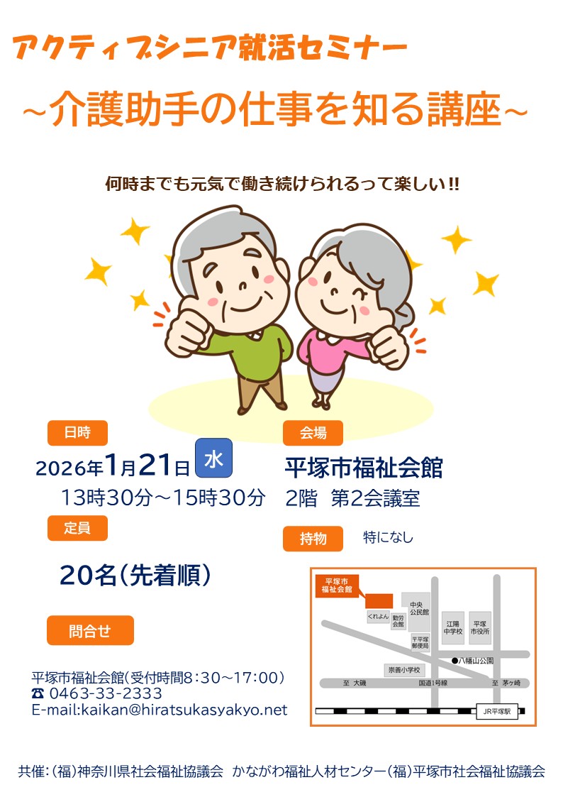 アクティブシニア就活セミナー~介護助手の仕事を知る講座~参加者募集